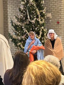 Wat vierden we weer een prachtig Kerstfeest samen in de Schepershof. De voorbereidingsgroep was de hele morgen al bezig geweest en het resultaat mocht er zijn! De kerkzaal zag er sfeervol uit met mooi gedekte tafels en het werd nog mooier toen de hele kerkzaal vol was met blije mensen op hun kerstbest gekleed. We zongen samen, luisterden naar solozang, naar gedichten en een actueel en boeiend verhaal. Na de viering aten we broodjes en soep en ook dat was een bijzonder gezellig gebeuren.